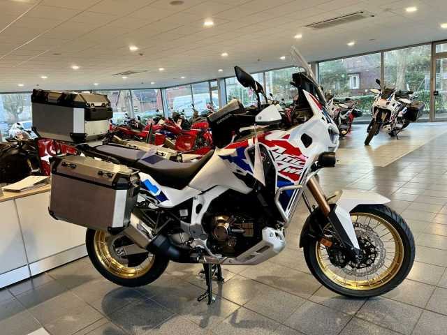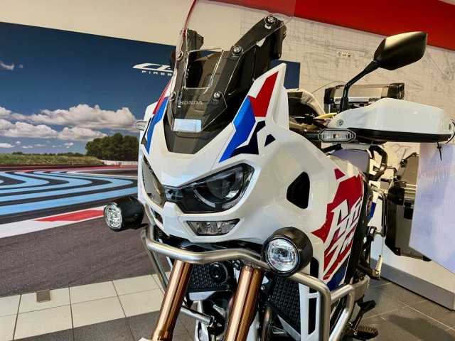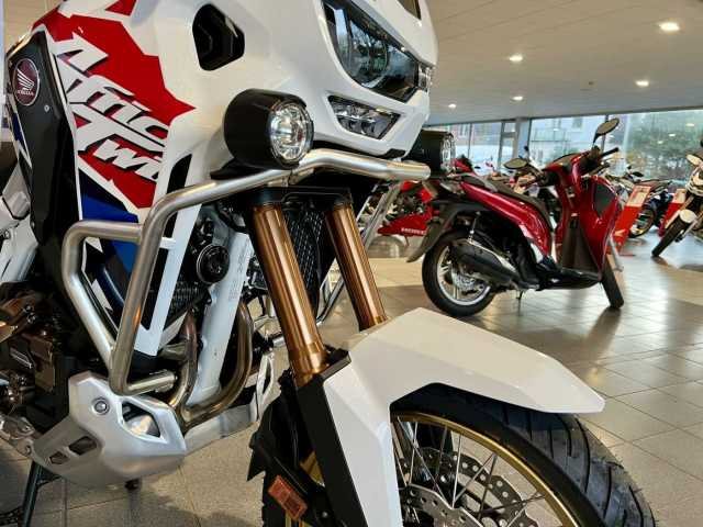 Ausgestattete Africa Twin Adventures Sports inkl. elektronischem Fahrwerk und DCT in der beliebten Glare White Lackierung mit Adventure-, Travel- & Urbanpaket bei uns im Showroom sofort verfügbar!