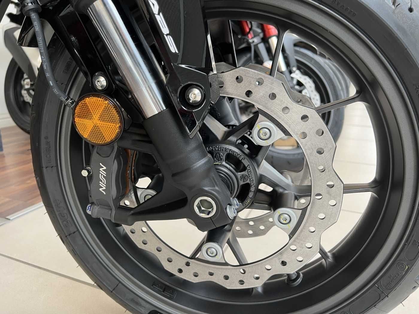 - Leichte 5-Speichen-Räder, eine sportliche Schwinge und Fußrasten aus Aluminium